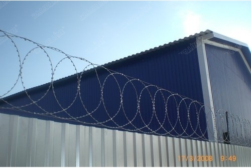 Плоский барьер безопасности (ПББ) представляет собой плоскую, спиралевидную конструкцию из армированной колючей ленты, витки которой, также как и у СББ, скрепляются между собой при помощи скоб из оцинкованной стали.